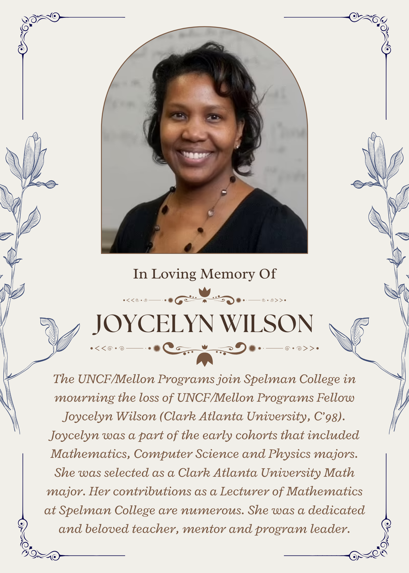 The UNCF/Mellon Programs join Spelman College in mourning the loss of UNCF/Mellon Programs Fellow Joycelyn Wilson (Clark Atlanta University, C'98)
