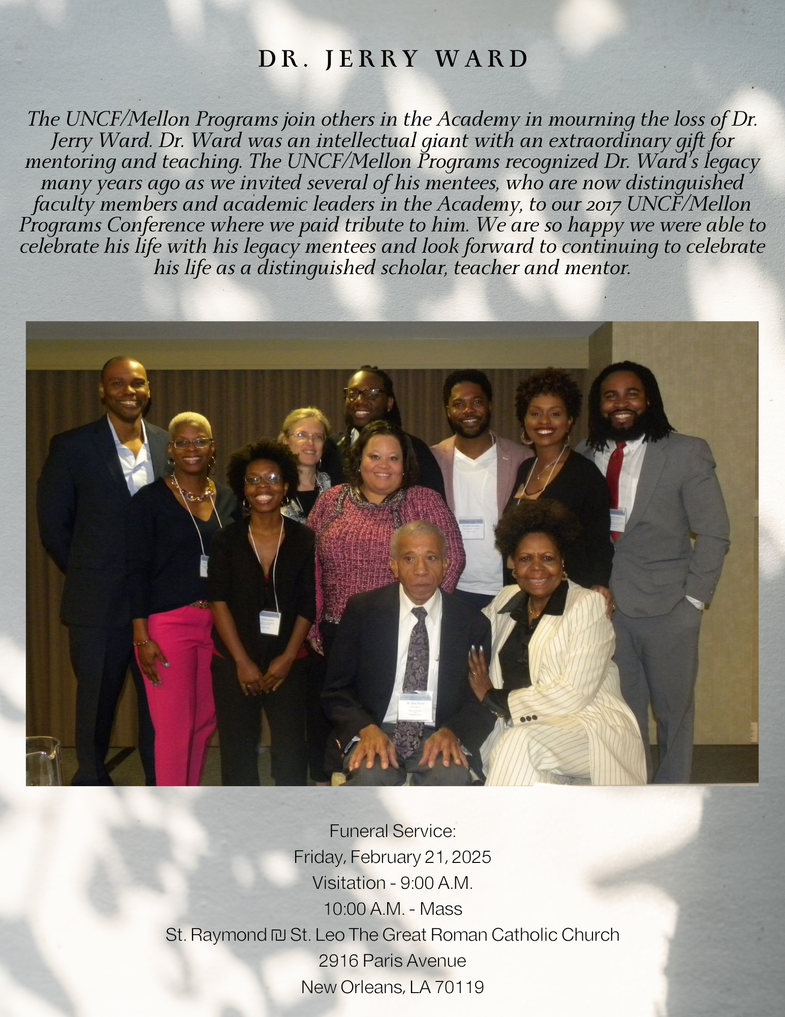 The UNCF/Mellon Programs join others in the Academy in mourning the loss of Dr. Jerry Ward. Dr. Ward was an intellectual giant with an extraordinary gift for mentoring and teaching.